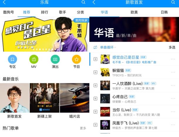 無獨有偶,由陳奕迅、李榮浩主演的電影《臥底巨星》也即將上線賀歲檔,而毛不易的《感覺自己是巨星》也作為電影推廣曲上線酷狗音樂,目前歌曲熱度持續(xù)升溫,為電影作品在前期宣傳進(jìn)行了很好的預(yù)熱。影視OST在數(shù)字音樂平臺的火熱帶動了影視劇的傳播聲量,演唱者自帶的話題性同樣也給影視劇帶去持續(xù)不斷的宣傳亮點。影視+音樂,這兩個在娛樂行業(yè)最有影響力產(chǎn)業(yè),強(qiáng)強(qiáng)聯(lián)手所取得的效果時見一斑。
