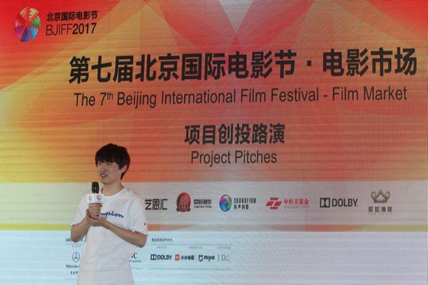 導(dǎo)演徐翔云在第七屆北京國(guó)際電影節(jié)電影市場(chǎng)項(xiàng)目創(chuàng)投路演現(xiàn)場(chǎng)