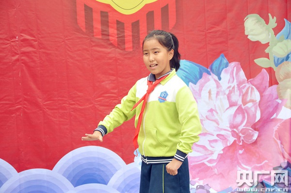 圖為《我是中國人》參演同學向記者展示《變臉》表演 央廣網(wǎng)記者王子衿攝
