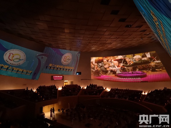 圖為開幕式演出現(xiàn)場(chǎng)播放藝術(shù)節(jié)宣傳片 央廣網(wǎng)記者王子衿攝