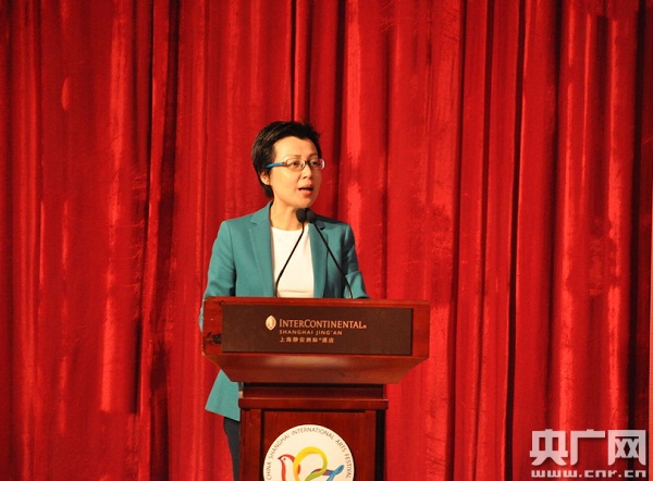 圖為上海國(guó)際藝術(shù)節(jié)中心總裁王雋介紹合作情況 央廣網(wǎng)記者王子衿攝