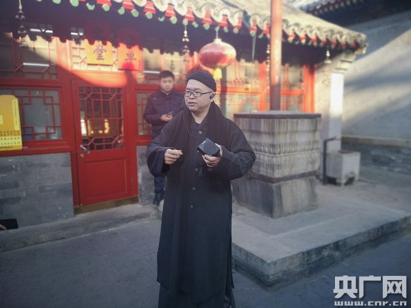圖為廣化寺廣曙法師介紹廣化寺與京師圖書館淵源 央廣網(wǎng)記者王子衿攝