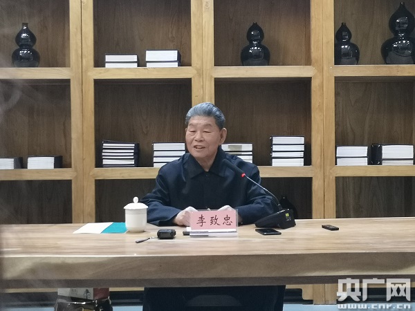 圖為李致忠先生向記者介紹國家圖書館發(fā)展歷史 央廣網(wǎng)記者王子衿攝