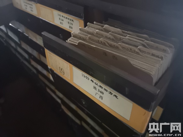 圖為國家圖書館古籍館內(nèi)廣西方志目錄卡片展示 央廣網(wǎng)記者王子衿攝