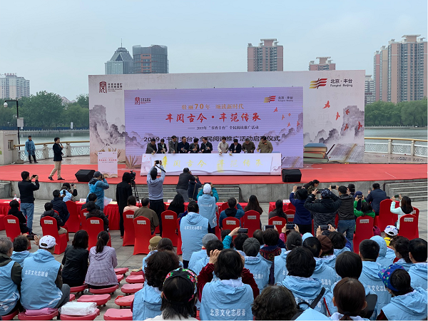 在該活動現(xiàn)場,多位非遺傳承人現(xiàn)場展示活字印刷、傳統(tǒng)手作、傳統(tǒng)文化手工坊、非遺面塑、兔爺兒、草編、老北京風車、吹糖人、毛猴、中國結等精彩手工坊互動體驗。此外還有50人大型朗誦表演、學禮懂禮知禮講座、走進神秘的海洋世界、北京絨花與傳統(tǒng)文化、揭秘漢字、詩詞大會、成語大會、傳統(tǒng)文化趣味挑戰(zhàn)等精彩內容,更邀請了多位文化名人現(xiàn)場分享他們的讀書故事。同時,包含領讀者培訓、閱讀分享、歷史文化專題講座、名人解秘專題講座、京味文化專題講座、古都文化專題講座、歷史文化專題講座、智能手機使用專題講座、閱讀馬拉松、親子繪本故事等全民閱讀活動還將在豐臺各區(qū)域開展。