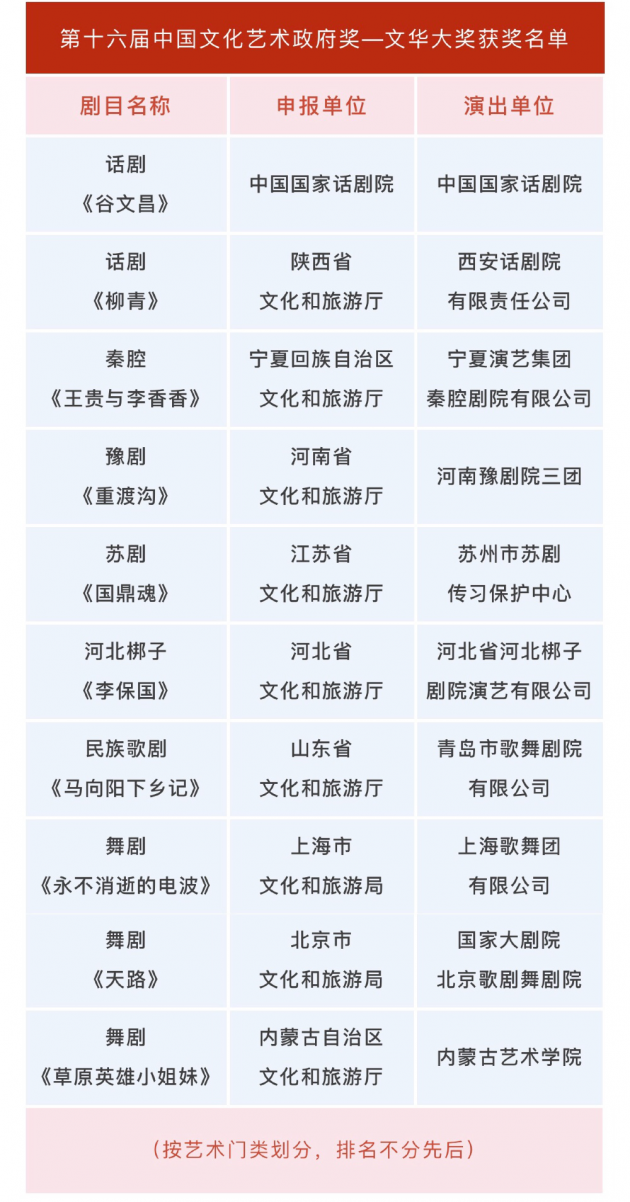 6月2日晚,第十二屆中國藝術(shù)節(jié)在上海圓滿落下帷幕,第十六屆文華獎(jiǎng)的十部“文華大獎(jiǎng)”劇目正式揭曉。