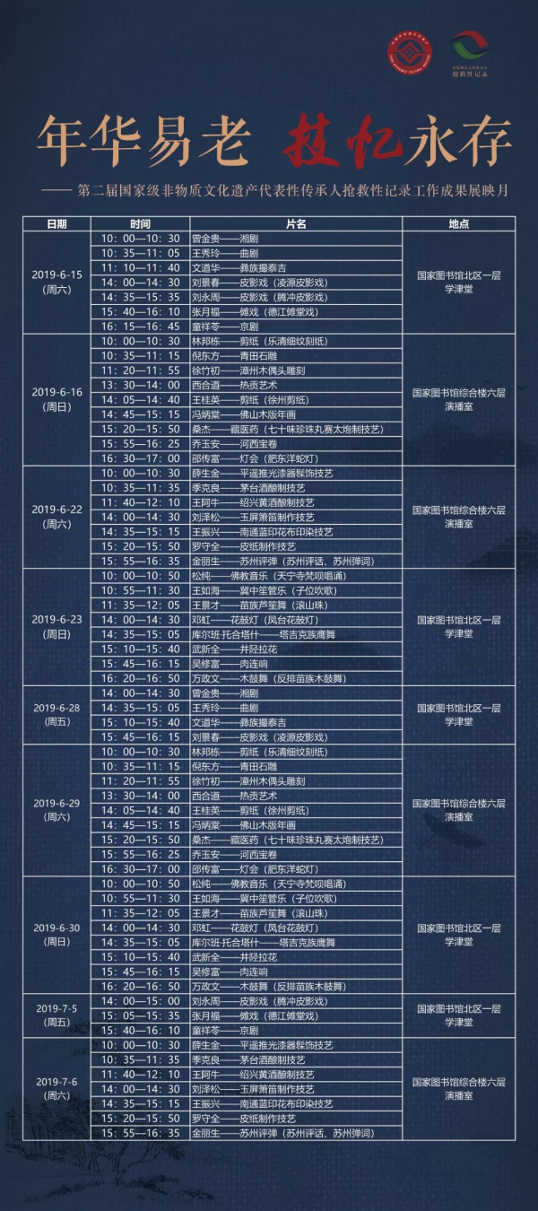 2019年6月7日—7月7日,“年華易老,技·憶永存——第二屆國家級非物質(zhì)文化遺產(chǎn)代表性傳承人搶救性記錄工作成果展映月”如期舉辦。