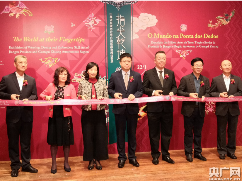 本次展覽活動由文化和旅游部港澳臺辦公室、澳門特別行政區(qū)政府文化局、江蘇省文化和旅游廳、廣西壯族自治區(qū)文化和旅游廳主辦,中央人民政府駐澳門特別行政區(qū)聯(lián)絡(luò)辦公室宣傳文化部協(xié)辦,文化和旅游部民族民間文藝發(fā)展中心承辦。此次“指尖乾坤——江蘇省和廣西壯族自治區(qū)織染繡技藝展”將持續(xù)展出至2020年2月16日。