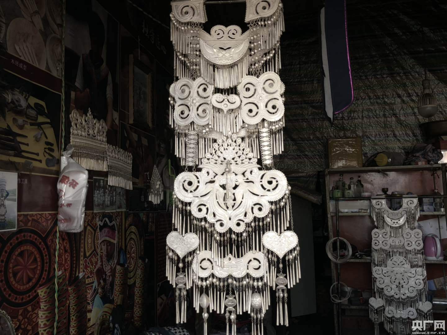 在國家級非物質(zhì)文化遺產(chǎn)傳承人勒古沙日家的銀飾店的墻上,琳瑯滿目的飾品,讓人看了眼花繚亂。勒古沙日家已經(jīng)經(jīng)歷了十五代傳承,在當(dāng)?shù)赜兄恍〉拿麣。為了將這項(xiàng)技藝傳承下去,勒古沙日還熱心的去教授弟子。近年來,他教的徒弟數(shù)不清,僅在布拖有嚴(yán)格師承關(guān)系的徒弟就有30多個(gè),而且還協(xié)助他們開了自己的銀飾店。