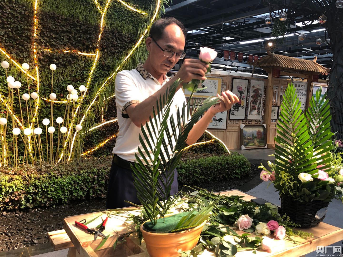身著旗袍的花藝愛好者展開了一場別開生面的花藝雅集,體驗(yàn)現(xiàn)代家居插花課程。這些愛好者都是花卉嘉年華的花卉消費(fèi)者,她們來自各行各業(yè),平時(shí)喜歡通過插花來陶冶情操,修身養(yǎng)性,享受慢節(jié)奏的生活。經(jīng)花藝?yán)蠋煹闹v解與指導(dǎo),一個(gè)個(gè)獨(dú)具匠心的插花作品展現(xiàn)出來,現(xiàn)場氣氛活躍,其樂融融。