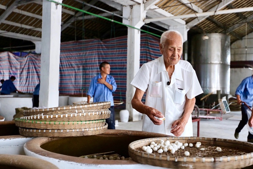 王阿牛是第一批國(guó)家級(jí)非物質(zhì)文化遺產(chǎn)項(xiàng)目紹興黃酒釀制技藝代表性傳承人,出生在紹興東浦賞祊村的釀酒世家,從少年時(shí)期就奠定了他的酒香人生。17歲跟父親進(jìn)酒作坊后,王阿牛繼承了父輩的釀酒技藝。他對(duì)紹興黃酒的釀制發(fā)酵技術(shù)刻苦鉆研,反復(fù)實(shí)踐,獲得了嫻熟完善的紹興酒生產(chǎn)技術(shù),成為全國(guó)黃酒行業(yè)出類拔萃的行家。1979年,他被聘為輕工業(yè)部評(píng)酒委員,1982年,他再次被聘為國(guó)家級(jí)黃酒評(píng)委。王阿牛積累了大量的一手資料,于1959年編寫(xiě)了《紹興酒操作規(guī)程》,退休后又寫(xiě)了30萬(wàn)字的《紹興酒釀造生產(chǎn)技術(shù)》,從而使紹興酒由祖祖輩輩口耳相傳的傳統(tǒng)技藝變成了有文字規(guī)定的系統(tǒng)的操作規(guī)程。為了紹興黃酒釀制技藝后繼有人,王阿牛多年來(lái)在各種黃酒培訓(xùn)班上傳授技藝,培養(yǎng)技術(shù)人才。從傳承再到傳授,王阿牛用盡全力讓黃酒釀制技藝得以發(fā)展,讓黃酒繼續(xù)飄香。
