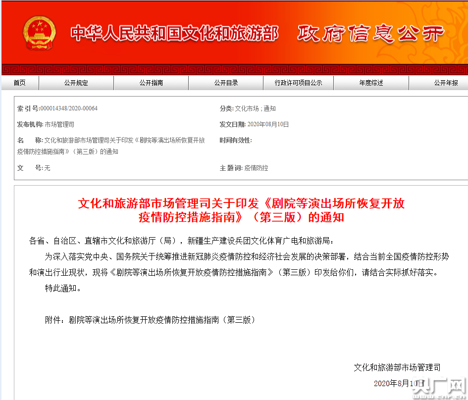 據(jù)了解,6月22日發(fā)布的《劇院等演出場所恢復(fù)開放疫情防控措施指南(第二版)》中“劇院等演出場所觀眾人數(shù)不得超過劇院座位數(shù)的30%”的要求,此次發(fā)布的《指南》進一步放寬了演出場所上座率。