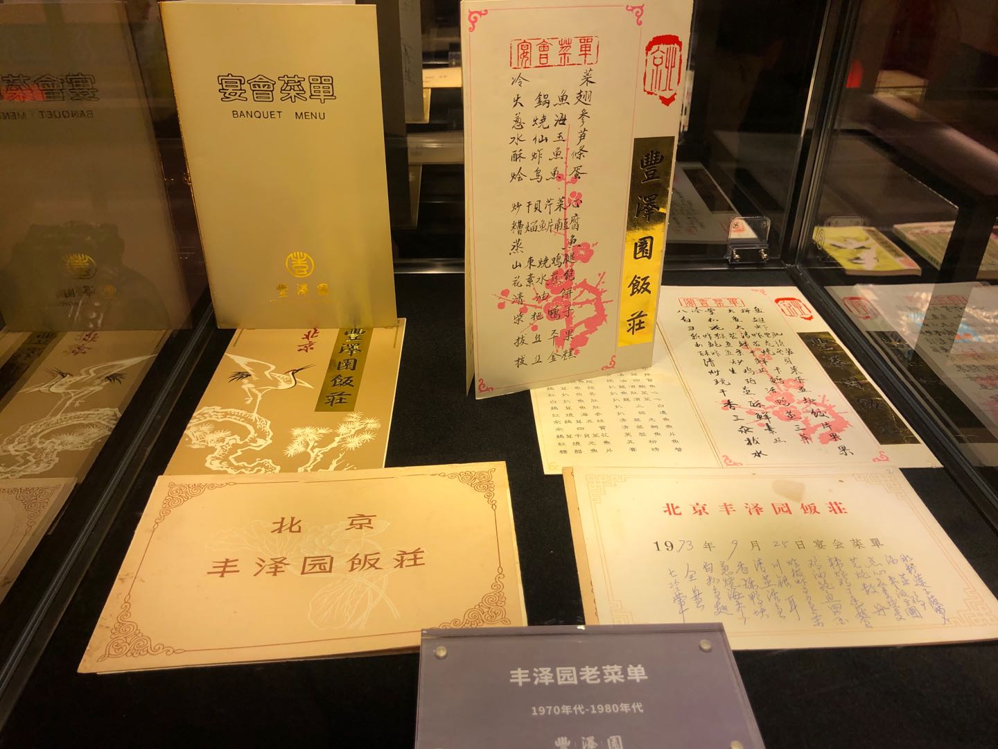 據(jù)了解,豐澤園開業(yè)之初是個(gè)四進(jìn)大院,青堂瓦舍,整齊寬敞。廳堂里裝飾著名人字畫,包間里的酒杯、果盤、布碟等餐具都是銀制的,由當(dāng)時(shí)著名銀鋪德興號(hào)打造。由于菜肴制作精細(xì)、風(fēng)格獨(dú)特、服務(wù)周到,開業(yè)不久就成為舊時(shí)京城的達(dá)官顯貴、社會(huì)名流們飲宴酬答聚會(huì)之地,當(dāng)年人們來豐澤園飯莊吃飯,就像現(xiàn)在的“網(wǎng)紅”餐館一樣需要排號(hào)等位。豐澤園餐廳經(jīng)理金雪介紹,展柜中長約一寸的長方形等位銅牌在當(dāng)時(shí)的使用率頗高。銅牌上的刻字按照千字文中“天地玄黃,宇宙洪荒,日月盈昃,辰宿列張”的順序排列,字后面還有號(hào),表明不同人數(shù)的桌子和不同的包間。