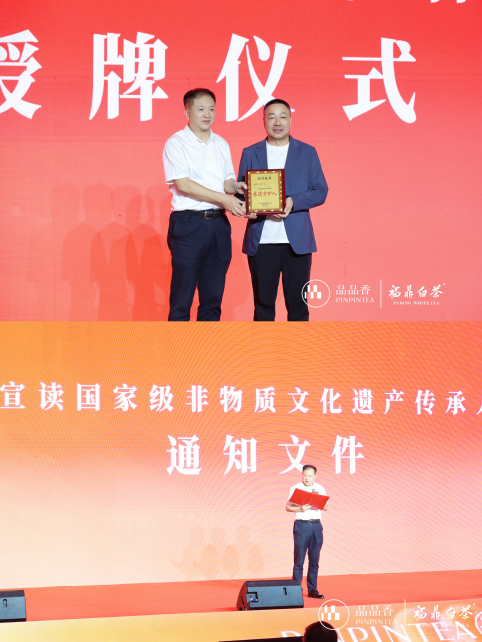 活動現(xiàn)場還舉行了授牌儀式。福鼎市人大常委會主任、福鼎市茶產(chǎn)業(yè)發(fā)展領導小組常務副組長 蔡梅生現(xiàn)場宣讀、福建品品香茶業(yè)有限公司董事長林振傳入選國家級“非遺傳人”的通知文件,并授予林振傳董事長“農遺守護人”榮譽稱號。