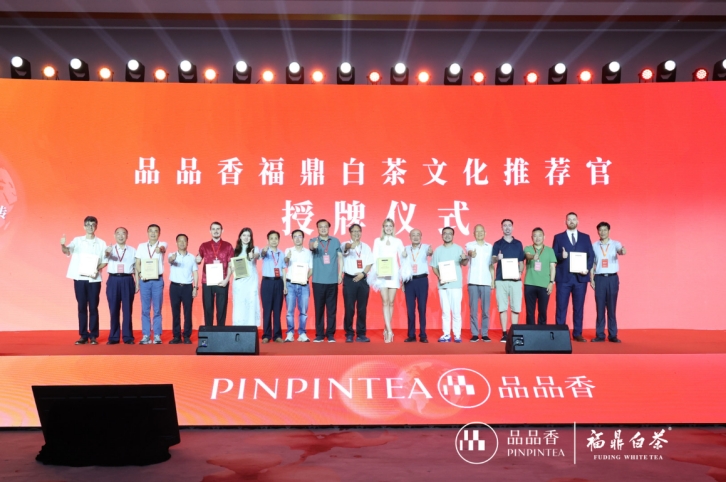 活動現(xiàn)場還舉行了“品品香福鼎白茶文化推薦官”授予儀式。9位來自不同領域、涵蓋中外背景的茶友獲此殊榮——既有深耕茶產(chǎn)業(yè)研究的浙江大學創(chuàng)新創(chuàng)業(yè)研究院茶產(chǎn)業(yè)創(chuàng)新中心執(zhí)行主任張心忠、聚焦茶文旅融合的旅行作家雷濤,也有致力于跨文化傳播的烏克蘭籍中國通陳悟空、塞爾維亞籍中醫(yī)藥研究者蘇俐娜、法國籍主持人路明等國際友人。