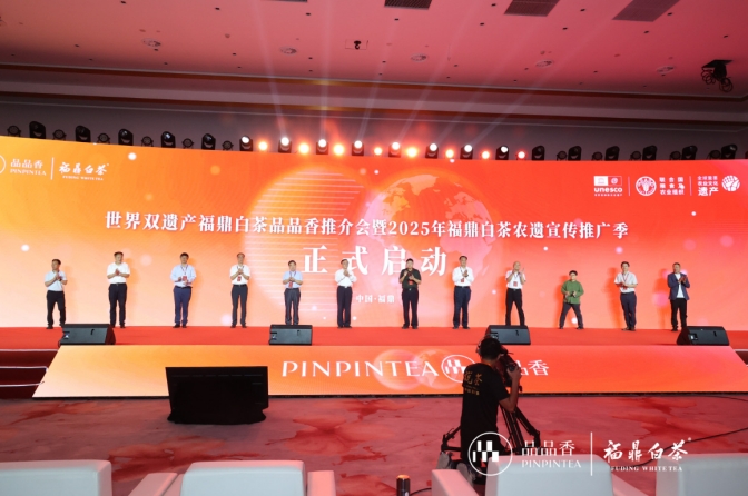 活動隨后還舉辦了2025年福鼎白茶農遺宣傳推廣季啟動儀式,隨著“3、2、1”的倒數(shù)聲,12位領導嘉賓共同按下啟動鍵,現(xiàn)場掌聲雷動。按下的不僅是啟動鍵,更是雙遺白茶全球化的“加速鍵”——標志著福鼎白茶將以“人類非遺+全球農遺”的雙重身份,系統(tǒng)性推進國際傳播:既通過文化推薦官講述雙遺故事,也依托行業(yè)協(xié)會推動品牌出海,更借助品品香等企業(yè)持續(xù)開拓的海外布局,讓雙遺白茶從太姥山下的地域特產(chǎn),成為全球消費者感知中國茶文化的“馨香名片”。