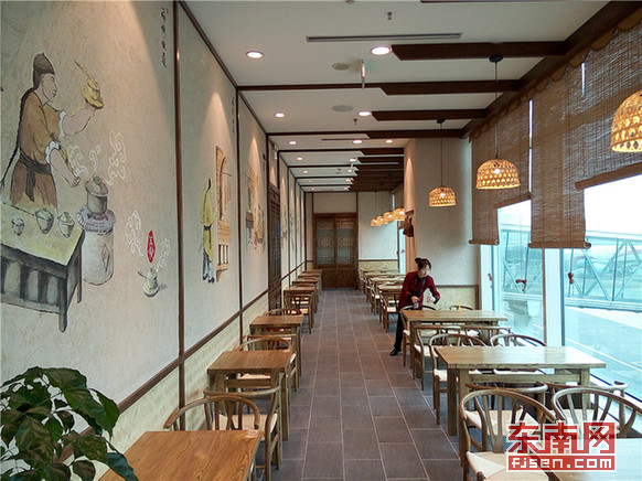 老款木制桌椅、古風木制擺件,體現出福州古街三坊七巷特有的格調,手工繪制的壁畫再現了福州傳統(tǒng)小吃制作過程和工藝。店老板說,他希望能通過這家店,向更多的外地旅客展示福州特色的美食文化。
