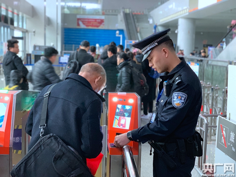 民警引導(dǎo)旅客進(jìn)站乘車(央廣網(wǎng)發(fā) 通訊員供圖)