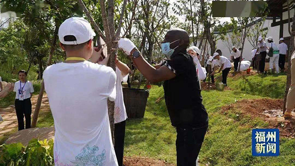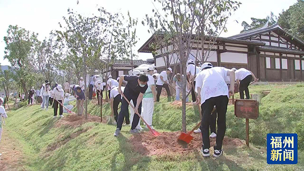 為凸顯“綠色世遺”理念,本屆世遺大會(huì)開展了“世遺林·碳中和”植樹活動(dòng);顒(dòng)在倉山區(qū)梁厝特色歷史文化街區(qū)的溪流兩側(cè)開辟約15畝植樹區(qū),邀請(qǐng)近百位中外嘉賓共同種植2棵榕樹和100棵福建山櫻花樹苗,為福州播下綠色種子,并在簽名樹牌上寫下寄語,留下美好祝福。