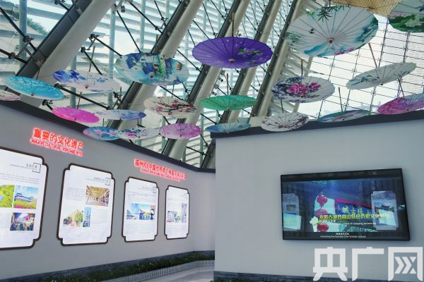 “世界遺產(chǎn)在福建”展區(qū),以白墻灰瓦、馬鞍墻、油紙傘等元素打造福州特色(央廣網(wǎng)發(fā) 龔雯攝)