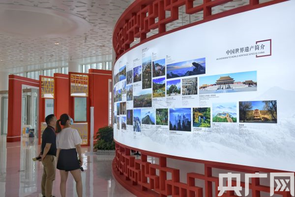展覽展示了中國較完善的世界遺產(chǎn)監(jiān)測(cè)體系與監(jiān)測(cè)預(yù)警平臺(tái)(央廣網(wǎng)發(fā) 龔雯攝)