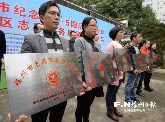 12月4日,福州市委文明辦、團(tuán)市委在鼓樓區(qū)鼓東街道中山社區(qū)聯(lián)合舉辦紀(jì)念“12·5國際志愿者日”暨社區(qū)志愿服務(wù)聯(lián)盟成立儀式活動(dòng)。活動(dòng)現(xiàn)場(chǎng),主辦方為12個(gè)“福州市志愿服務(wù)示范社區(qū)”授牌,并為“綠化福州”志愿服務(wù)隊(duì)授旗。各城區(qū)志愿者代表參觀了志愿服務(wù)示范社區(qū)風(fēng)采展,觀摩“學(xué)雷鋒一條街”現(xiàn)場(chǎng)志愿服務(wù)活動(dòng)。