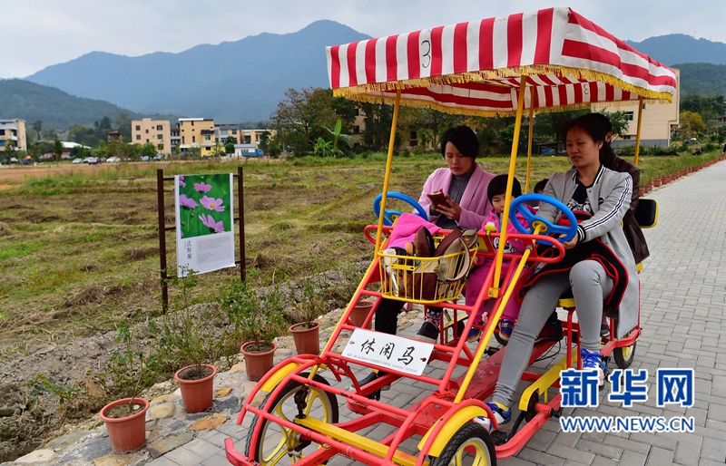 12月11日,游客乘人力游覽車在福州市閩侯縣孔元村游覽。新華社記者 魏培全 攝