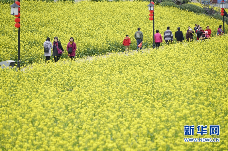 2月2日,游人在福州花海公園盛開的油菜花田賞花。新華社記者 宋為偉 攝