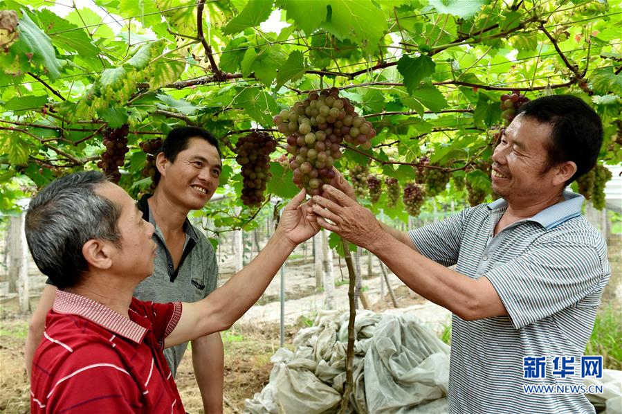 7月8日,建甌市小橋鎮(zhèn)陽澤村共產(chǎn)黨員、葡萄種植戶江凌生(右)在向村民傳授葡萄種植經(jīng)驗(yàn)。 2016年以來,福建省建甌市在基層黨組織建設(shè)中,通過創(chuàng)建“黨建示范帶”,充分發(fā)揮黨組織的示范引領(lǐng)作用。各村根據(jù)產(chǎn)業(yè)特色,形成“以點(diǎn)串線,以線成帶”的農(nóng)村發(fā)展新模式,有效促進(jìn)農(nóng)村經(jīng)濟(jì)的發(fā)展。 新華社記者 張國(guó)俊 攝 -