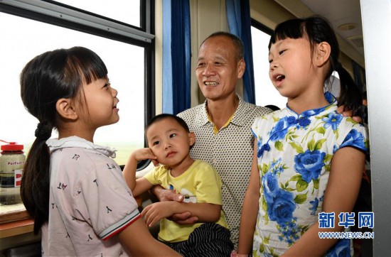 7月8日,在福州開(kāi)往北京西的Z60次列車上,一位爺爺帶著孫子孫女前往北京與在外工作的孩子父親團(tuán)聚。