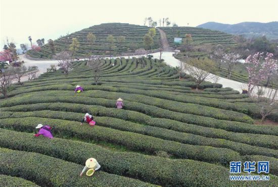3月21日,茶農(nóng)在福鼎市佳陽畬族鄉(xiāng)后陽村的鼎白茶園采摘茶青(無人機拍攝)。 福建省福鼎市白茶種植歷史悠久。近年來福鼎市把茶產(chǎn)業(yè)作為精準脫貧和鄉(xiāng)村振興的戰(zhàn)略性產(chǎn)業(yè)來發(fā)展,通過多項舉措推動茶產(chǎn)業(yè)轉(zhuǎn)型升級,2018年全市茶園面積達20.3萬畝,茶葉總產(chǎn)量2.7萬噸,涉茶總產(chǎn)值達56.88億元,有效帶動當?shù)剜l(xiāng)村產(chǎn)業(yè)振興和農(nóng)民增收致富。 新華社記者林善傳攝