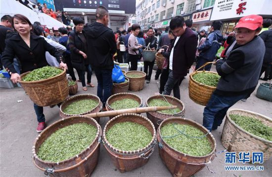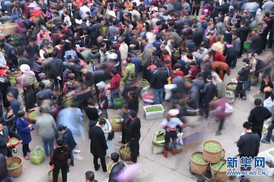 3月21日,茶農(nóng)在福鼎市點頭鎮(zhèn)的福鼎白茶交易市場售賣茶青。 福建省福鼎市白茶種植歷史悠久。近年來福鼎市把茶產(chǎn)業(yè)作為精準脫貧和鄉(xiāng)村振興的戰(zhàn)略性產(chǎn)業(yè)來發(fā)展,通過多項舉措推動茶產(chǎn)業(yè)轉(zhuǎn)型升級,2018年全市茶園面積達20.3萬畝,茶葉總產(chǎn)量2.7萬噸,涉茶總產(chǎn)值達56.88億元,有效帶動當?shù)剜l(xiāng)村產(chǎn)業(yè)振興和農(nóng)民增收致富。 新華社記者林善傳攝