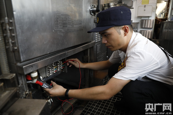 圖為顏其正在處理突發(fā)空調(diào)故障(央廣網(wǎng)發(fā) 王玉星 攝)