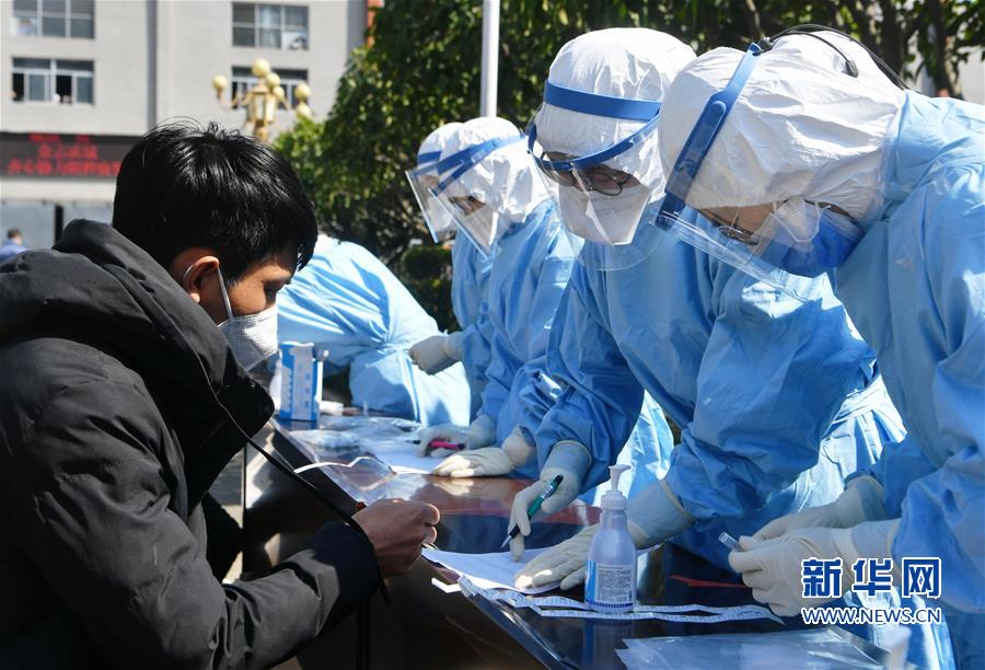 2月18日,長樂區(qū)總醫(yī)院感染科的護士們對返崗工人進行咽拭子采集。