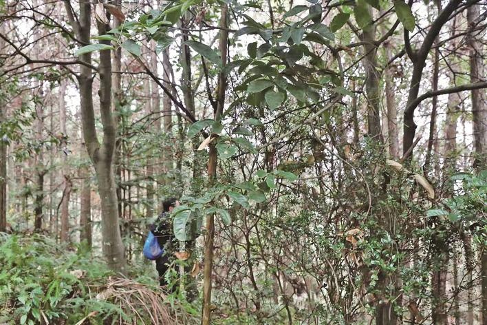 踏入五谷仙山那片神秘的區(qū)域,在海拔400米至600米之間,一片約3公頃的土地上,花櫚木野生種群蓬勃生長(zhǎng)。高大的花櫚木植株格外引人注目,有的高達(dá)20米,胸徑達(dá)30厘米,它們?nèi)缇奕税阋倭⒃谏搅种,粗壯的樹干仿佛在訴說(shuō)著歲月的滄桑。陽(yáng)光透過(guò)茂密的枝葉灑下,在地面形成一片片金色的光斑,與周圍郁郁蔥蔥的景象相互映襯,構(gòu)成了一幅寧?kù)o而美好的畫面。而在這些大樹的周圍,幼樹和幼苗們也在努力地生長(zhǎng)著。最引人注目的當(dāng)屬那掛在枝頭的花櫚木種子,一顆顆鮮艷的紅豆宛如璀璨的寶石,在綠葉的簇?fù)硐嘛@得格外耀眼。