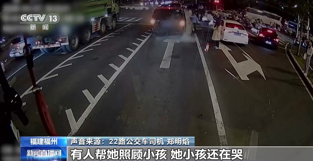 22路公交車(chē)司機(jī) 鄭明焰:我說(shuō)把車(chē)熄火,我去車(chē)上給你拿滅火器,當(dāng)時(shí)她可能?chē)樕盗,她小孩還在車(chē)上,后面我就說(shuō)趕緊把小孩弄下來(lái)。然后叫(公交)車(chē)上的乘客下車(chē),去幫我把周?chē)能?chē)分流,有人幫她照顧小孩,她小孩還在哭, 我是在第一個(gè)滅火器用完的情況下,又用第二個(gè)滅火器(繼續(xù)滅火)。