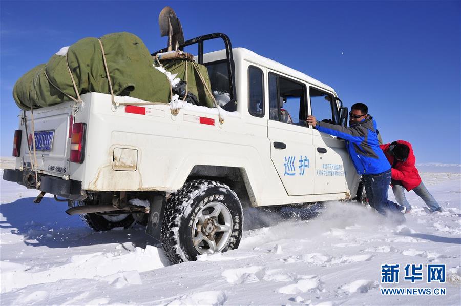2012年5月14日,可可西里巡山隊隊員秋培扎西(左一)和松森朗寶在推動陷進雪地的汽車。 2017年7月7日,中國青海省可可西里在波蘭克拉科夫舉行的第41屆聯(lián)合國教科文組織世界遺產(chǎn)委員會會議(世界遺產(chǎn)大會)上獲準列入世界自然遺產(chǎn)名錄。至此,中國已擁有51處世界遺產(chǎn)。 新華社記者 吳光于 攝 -