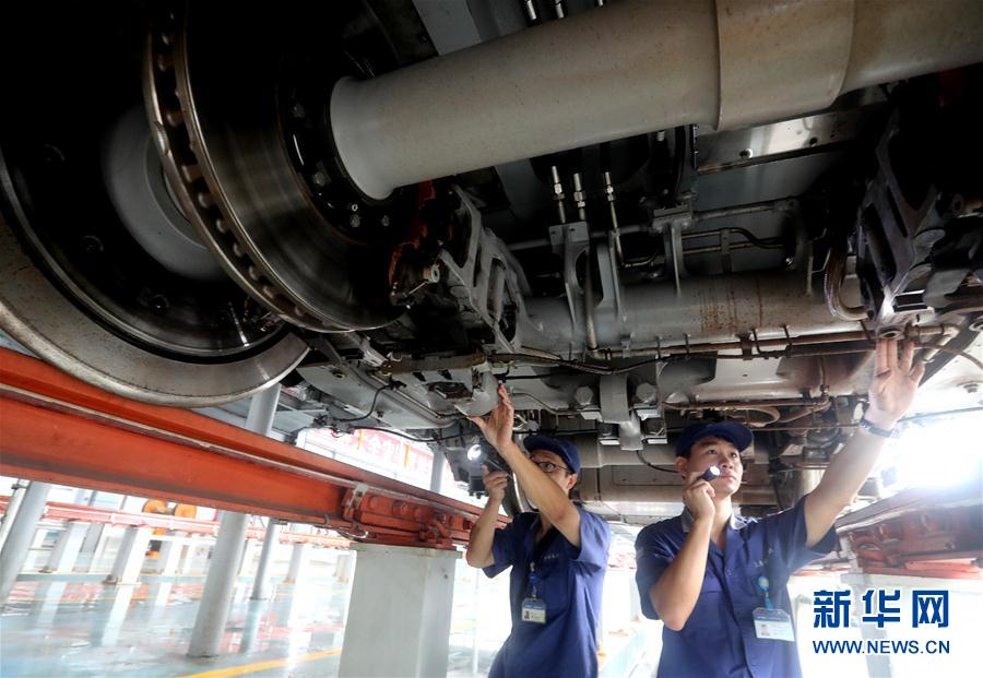9月26日,技術(shù)人員在對CRH6A新型動車組走行部進行調(diào)試與檢查。 新華社記者 陳飛 攝 -