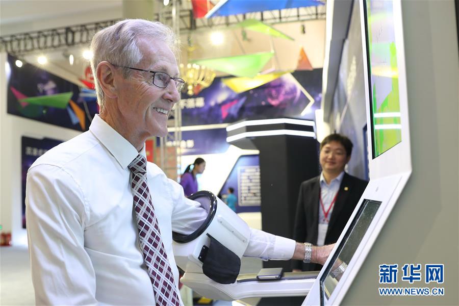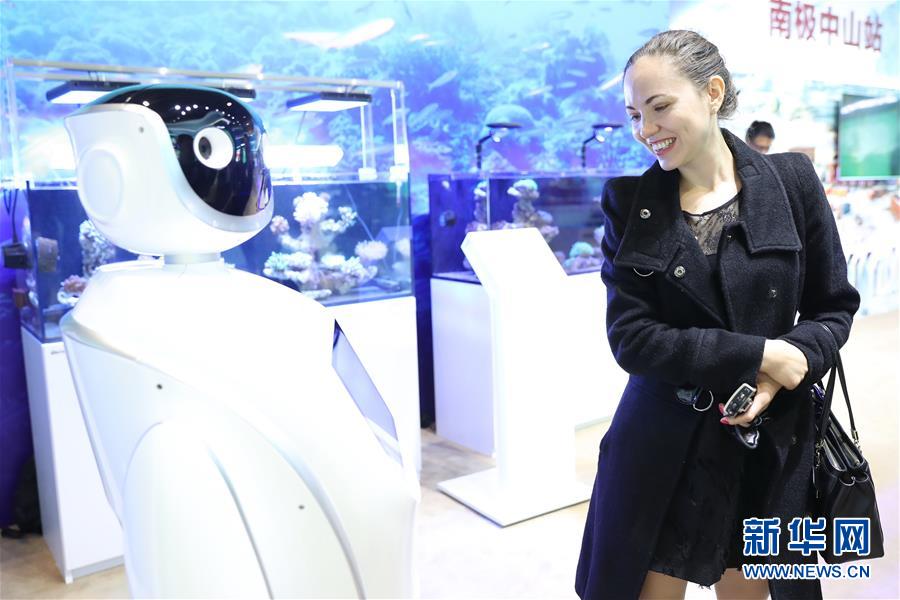 10月13日,嘉賓在展覽上與機(jī)器人互動(dòng)。當(dāng)日,由外交部、商務(wù)部、國(guó)家外專局邀請(qǐng)的外國(guó)駐華使節(jié)、在華工作的外國(guó)企業(yè)界人士和專家來(lái)到北京展覽館,參觀“砥礪奮進(jìn)的五年”大型成就展。展覽分10個(gè)主題內(nèi)容展區(qū)和1個(gè)特色體驗(yàn)展區(qū),全面介紹了中國(guó)經(jīng)濟(jì)社會(huì)發(fā)展新成就,中國(guó)共產(chǎn)黨治國(guó)理政新理念以及人民群眾生產(chǎn)生活發(fā)生的新變化。新華社記者 張玉薇 攝 -