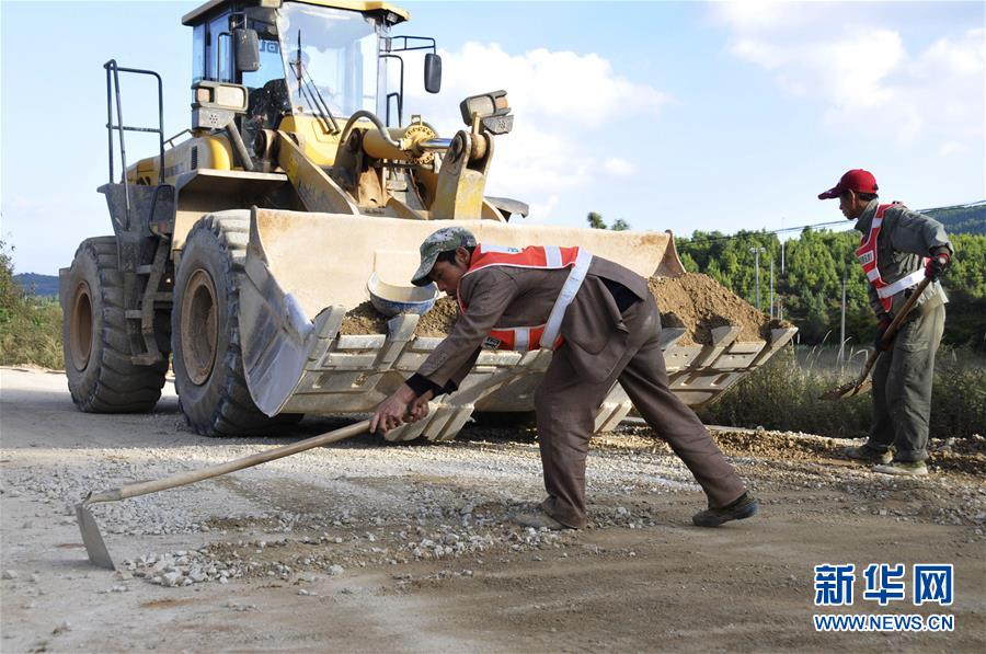 工人在云南省會澤縣駕車鄉(xiāng)的鄉(xiāng)村公路施工現(xiàn)場忙碌(10月20日攝)。這五年,中國發(fā)展取得了歷史性成就,實現(xiàn)了歷史性變革,中華民族迎來了從站起來、富起來到強起來的偉大飛躍。各地干部群眾表示,要堅忍不拔、鍥而不舍,奮力譜寫社會主義現(xiàn)代化新征程的壯麗篇章!⌒氯A社記者白靖利攝 -