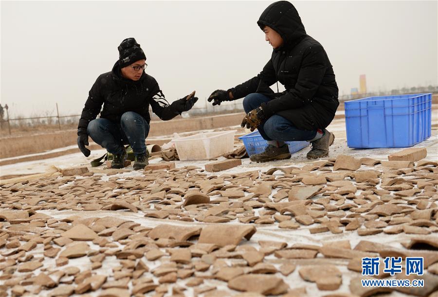 考古人員在秦咸陽(yáng)城胡家溝建筑遺址考古工地上清理殘瓦(1月24日攝)。近日,考古工作者首次在秦咸陽(yáng)城遺址區(qū)域內(nèi)發(fā)現(xiàn)秦代大型國(guó)家府庫(kù)遺存。這是繼20世紀(jì)70至80年代發(fā)掘秦咸陽(yáng)宮遺址以來(lái),在秦咸陽(yáng)大遺址保護(hù)區(qū)內(nèi)再次發(fā)現(xiàn)秦代大型官署建筑遺址。此次發(fā)現(xiàn)的遺址位于陜西省西咸新區(qū)秦漢新城窯店鎮(zhèn),地處秦都咸陽(yáng)城宮區(qū)以西的胡家溝塬地。遺址建筑四面為夯土垣墻,墻體厚度約3米,寬19.5米,總長(zhǎng)110米。發(fā)掘過(guò)程中出土了數(shù)量眾多的石質(zhì)編磬殘塊,目前已在23件殘塊上發(fā)現(xiàn)了小篆“北宮樂(lè)府”等字樣,再次證實(shí)了秦代設(shè)樂(lè)府的史實(shí)。新華社記者 李一博 攝 -