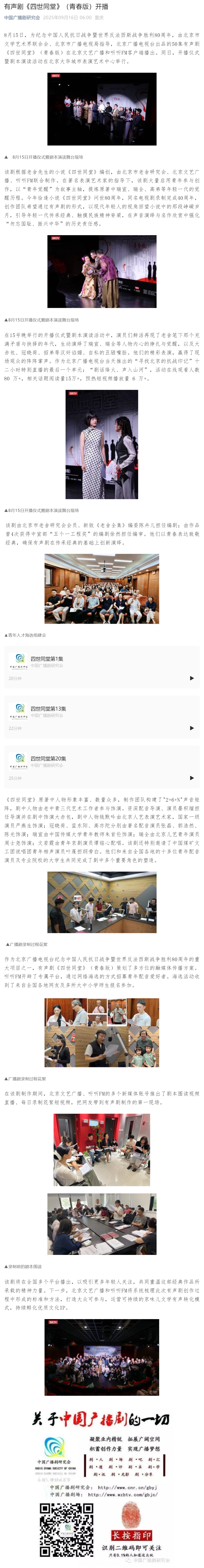 中國廣播劇研究會成立于1980年,它是全國廣播系統(tǒng)成立最早的社團之一。多年來,中國廣播劇研究會認真貫徹執(zhí)行黨的各項文藝方針、政策、積極開展工作,組織業(yè)務(wù)交流和理論研究活動,扶植各臺進行劇目創(chuàng)作。從1984年開始,組織創(chuàng)辦了全國廣播劇評獎活動,對中國廣播劇事業(yè)的繁榮和發(fā)展起到了推動作用。
