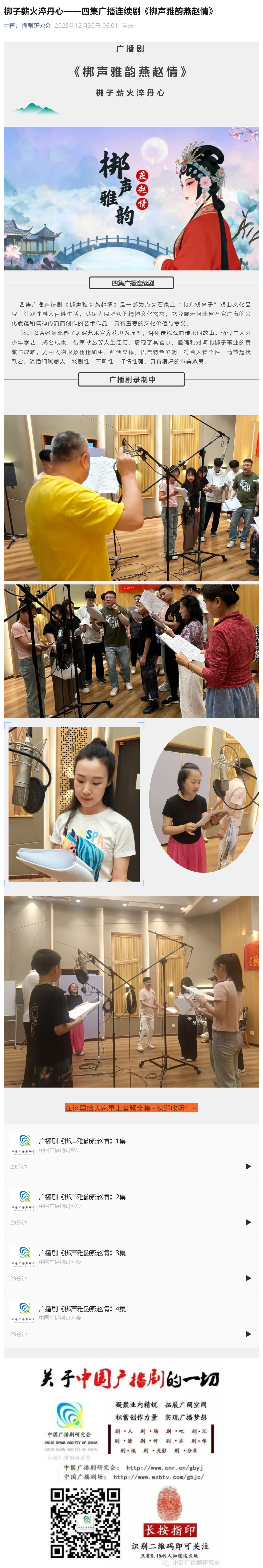 中國(guó)廣播劇研究會(huì)成立于1980年,它是全國(guó)廣播系統(tǒng)成立最早的社團(tuán)之一。多年來,中國(guó)廣播劇研究會(huì)認(rèn)真貫徹執(zhí)行黨的各項(xiàng)文藝方針、政策、積極開展工作,組織業(yè)務(wù)交流和理論研究活動(dòng),扶植各臺(tái)進(jìn)行劇目創(chuàng)作。從1984年開始,組織創(chuàng)辦了全國(guó)廣播劇評(píng)獎(jiǎng)活動(dòng),對(duì)中國(guó)廣播劇事業(yè)的繁榮和發(fā)展起到了推動(dòng)作用。