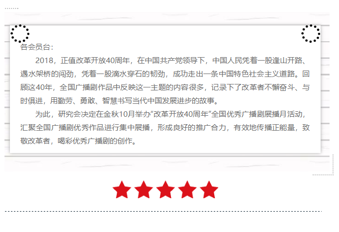 關(guān)于舉辦 “改革開放40周年”全國優(yōu)秀廣播劇 展播活動的通知