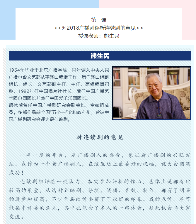 中國廣播劇研究會“微課”大講堂今日開課!熊生民