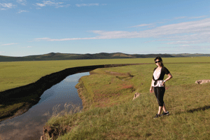莫爾格勒河纖細(xì)的身影,如飄動的哈達(dá)般在綠色山谷中曲折蜿蜒,一座座潔白的蒙古包散落在河邊,流云般的羊群輕輕的飄落在河畔,一切都是那么的和諧自然。