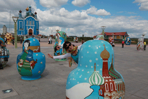 滿洲里套娃廣場建于2006年,是全國唯一的以俄羅斯傳統(tǒng)工藝品——套娃為主題的旅游休閑娛樂廣場,它集中體現(xiàn)了滿洲里的中、俄、蒙交界地域特色和中、俄、蒙風(fēng)情交融的特點。主題廣場面積為6萬平方米,主體建筑是一個30米高的大套娃,建筑面積為3200平方米,是目前世界上最大的套娃廣場。