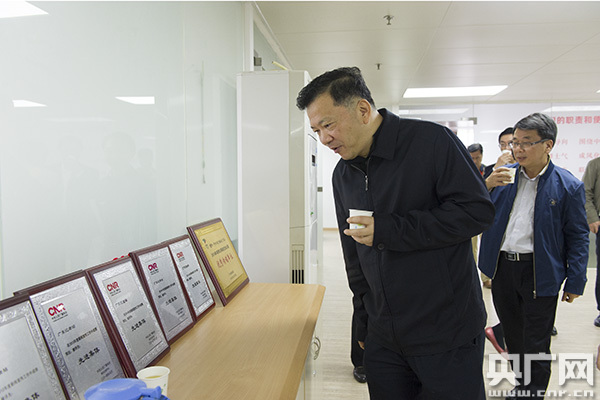 廣東省委常委、宣傳部部長慎海雄瀏覽華夏之聲廣州編輯部獲得的榮譽(yù)