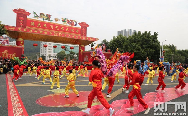 民間藝術(shù)巡演、“炮仗攻獅子”和煙花文藝晚會(huì)等元宵系列活動(dòng)在廣東省肇慶市德慶縣城舉行(攝影龍?jiān)S 岑瑞青)