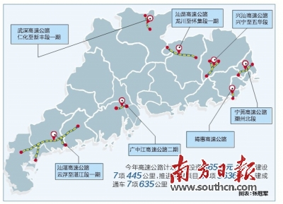 在按計(jì)劃取得整體用地批復(fù)的前提下,5月全線開工廣州新白云國(guó)際機(jī)場(chǎng)第二高速公路一期、廣佛肇高速公路廣州佛山段、中(山)開(平)高速公路江門段、懷(集)陽(江港)高速公路懷集至郁南段一期、深圳至中山跨江通道深圳側(cè)接線工程等5項(xiàng);6月全線開工懷(集)陽(江港)高速公路懷集至郁南段二期、潮汕環(huán)線高速公路二期、珠海鶴洲至高欄港高速公路一期、佛(山)江(門)高速公路和順至陳村段等4項(xiàng);7月全線開工梅州東環(huán)高速公路;8月全線開工廣州新白云國(guó)際機(jī)場(chǎng)第二高速公路二期、興(寧)汕(尾)高速公路五華至陸河段、(東)莞番(禺)高速公路橋頭至沙田段等3項(xiàng);9月全線開工羅(定)信(宜)高速公路、大(埔)豐(順)(五)華高速公路豐順至五華段等2項(xiàng);10月全線開工開(平)陽(春)高速公路、玉湛高速公路一期、河惠莞高速公路河源紫金至惠州惠陽段、河惠莞高速公路惠州平潭至潼湖段等4項(xiàng);11月全線開工深圳至中山跨江通道海中橋隧主體工程。